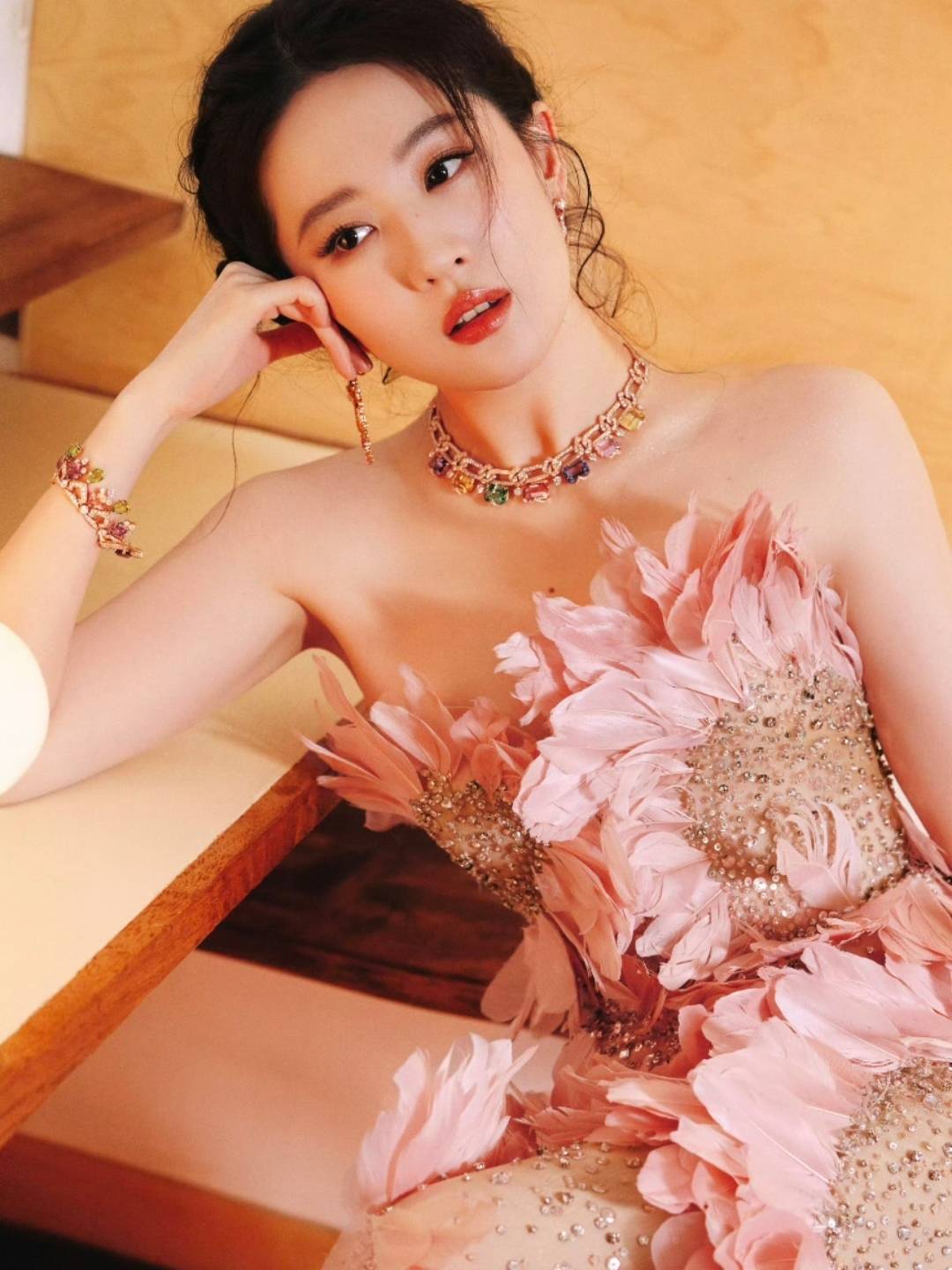当刘亦菲身着ElieSaab2025秋冬高定礼服踏上VOGUE盛典红毯时,花瓣状裙摆随步伐轻颤,鎏金簪花头饰与宝格丽红宝石项链交相辉映,2分30秒的专属压轴时间里,追光灯为她拉出的光影比其他嘉宾长出一倍。这场被团队打磨半个月的「女王加冕」秀,不仅让#刘亦菲压轴#话题瞬间引爆热搜,更让连续三年手握该品牌国内首穿权的她,再次站在时尚圈的风口浪尖。